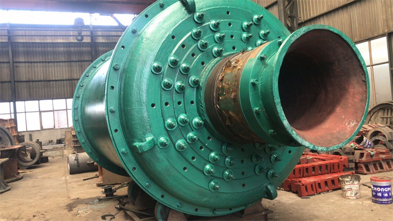 溢流型球磨機筒體用厚度15-36mm的鋼板焊接而成,在筒體的兩端焊有鑄鋼制造的法蘭盤,用螺栓將端蓋2和3與法蘭盤連接在一起,二者須精密加工和配合,因為承載磨礦機質(zhì)量的中空軸頸焊在端蓋上。在筒體上開有1-2個人孔,供檢修和更換襯板用。筒體和端蓋內(nèi)部敷設有襯板5。端蓋上的中空軸頸支承在主軸承4上。主軸承常用的是滑動軸承,其直徑很大,但長度很短。軸瓦用巴氏合金澆鑄,與一般滑動軸承不同之處在于僅僅下半部有軸瓦。整個軸承除軸瓦用巴氏金澆鑄外,其余用鑄鐵制成。由于球磨機的跨度和載荷很大,將發(fā)生一定程度的撓曲,而且制造和裝配的誤差也難以保證準確的同心度,因此主軸承制成自動調(diào)心滑動軸承,為防止軸瓦轉位過大而從軸承座中滑出,在軸承座與軸瓦的球面***放一圓柱銷釘。